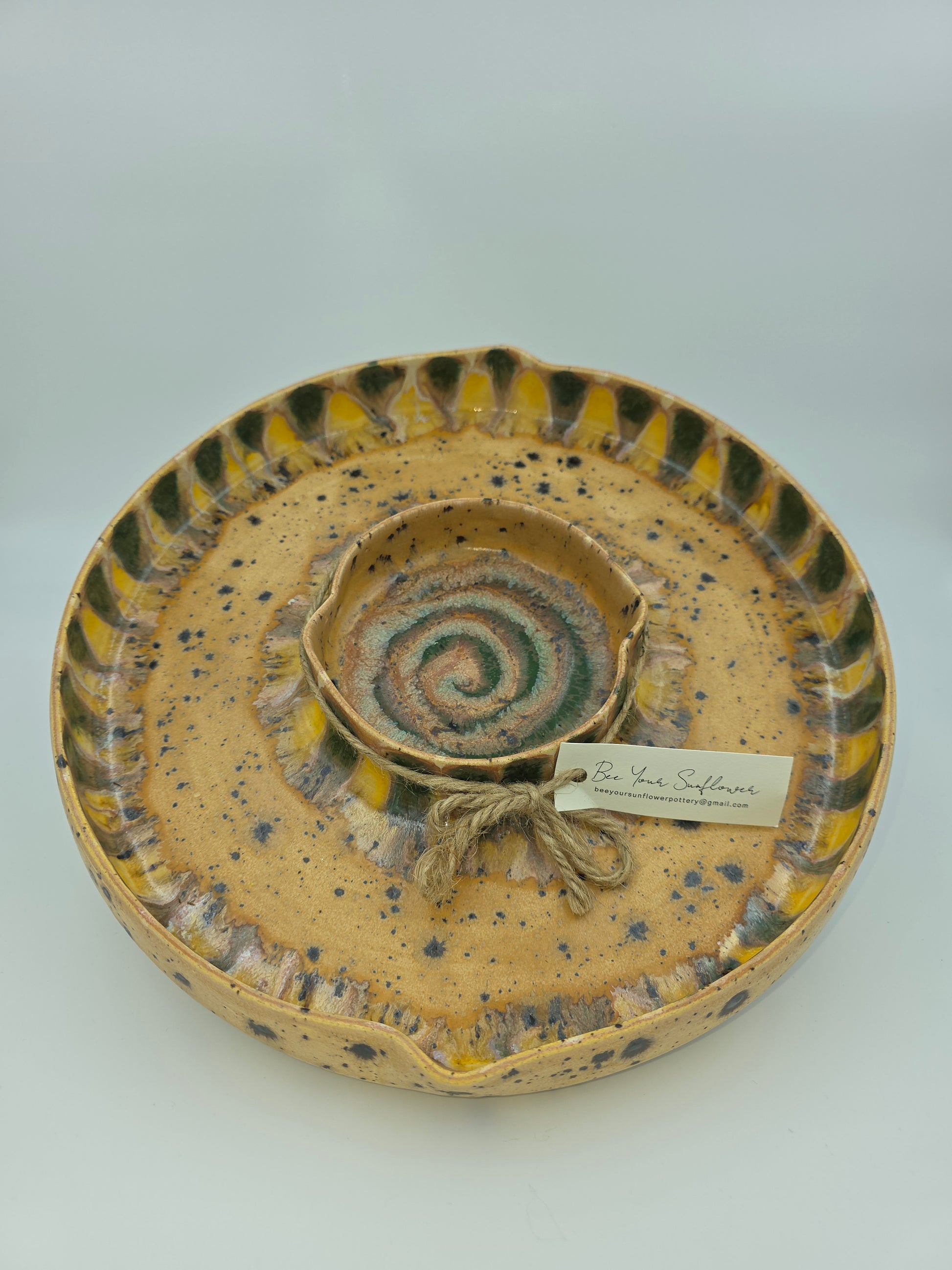 Chip n Dip Bowl- Great for chips-n-salsa, veggies-n-dip or seafood-n-dip. Food safe, dishwasher safe and microwaveable safe. Measurements: 11 round x 1 3/8 tall.